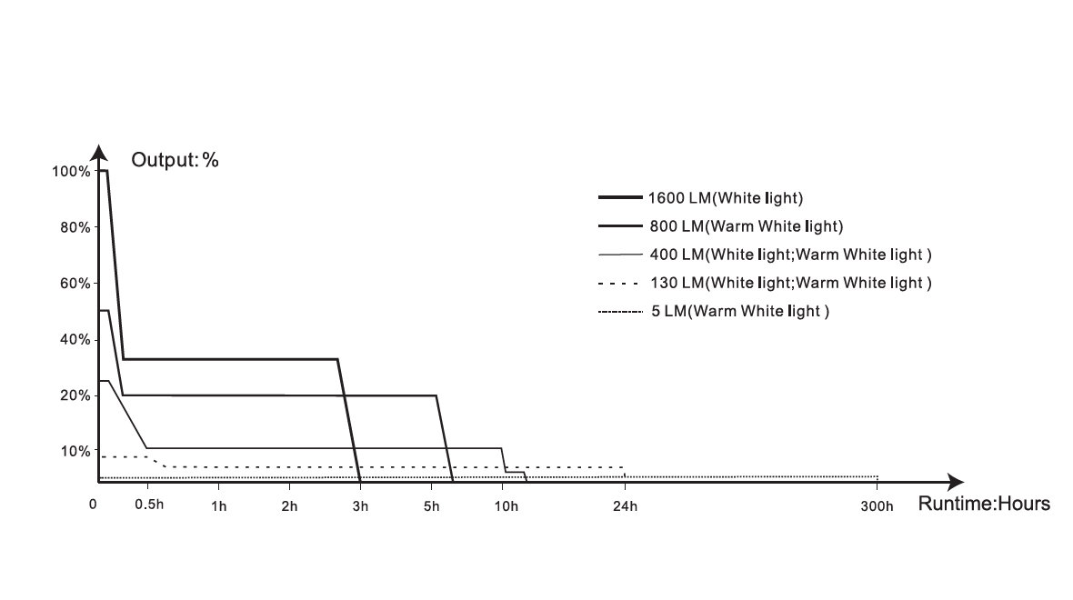 Grafovi se temelje na vrijednostima izmjerenim u skladu s ANSI standardima.U stvarnim uvjetima (kada je svjetiljka uključivana, isključivana, prebacivana između načina rada, korištena na različitim temperaturama), ove vrijednosti i razlike između modela mogu biti drugačije.