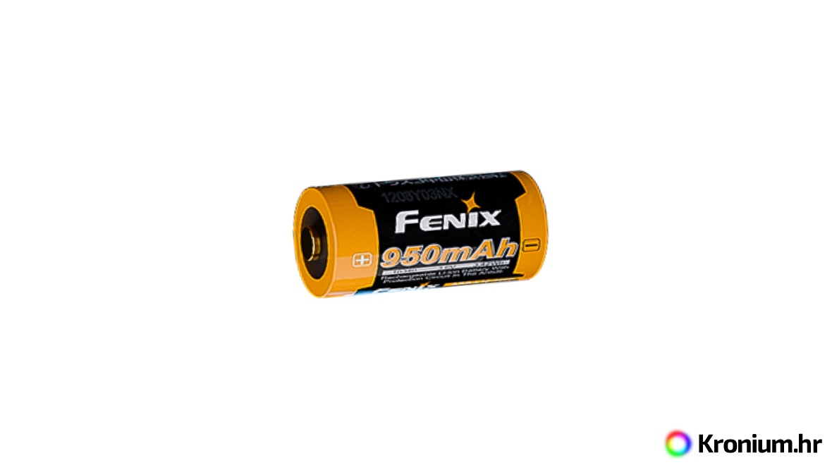 Fenix ARB-L16-950P je punjiva Li-ion baterija veličine RCR123A (16340) s kapacitetom od 950 mAh. Može se puniti u lampama za punjenje i čeonim lampama kao i u klasičnom vanjskom punjaču. Posebno je prikladan za opremu s većom potrošnjom struje, npr. svjetiljke i prednja svjetla Fenix E18R V2.0, Fenix HM50R V2.0, Fenix HM51R V2.0, Fenix Vitae, Fenix PD25R. Li-ion tehnologija daje jedan od najboljih omjera količine pohranjene energije i težine ćelije. Baterije nemaju efekt pamćenja i samopražnjenje je minimalno.