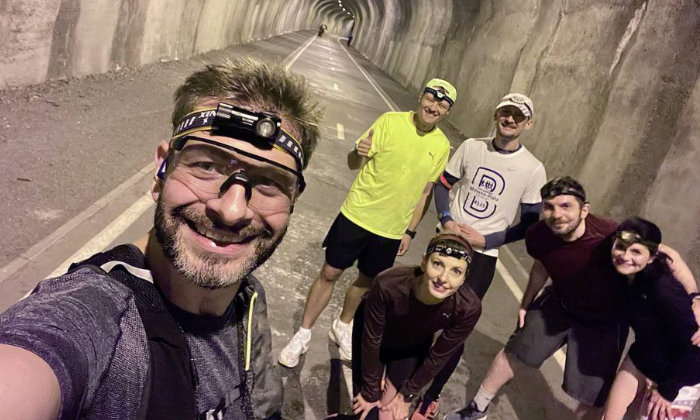 V popredí Michal Hrabec z Running2.cz s čelovkou Fenix HM51R Ruby V2.0