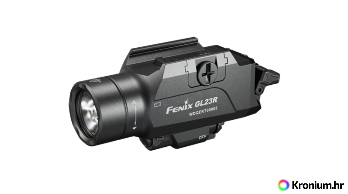 Laserska pištoljska punjiva svjetiljka Fenix GL23R posebno je dizajnirana za korištenje s kratkim oružjem. Jačina bijele svjetlosti je 1200 ANSI lumena i domet do 240 metara, svjetlo ima i zeleni laser koji je pogodan za lakše ciljanje (smjer lasera se može fino podešavati). Svjetlo se napaja pomoću jedne Fenix ARB-L18-1100 Li-ion baterije, koja se ne puni direktno i dolazi u paketu preko USB-C konektora sa strane svjetla. Jednostavno upravljanje svjetiljkom je oboustranné (pro praváky i leváky). GL23R ne dolazi s tri verzije páček prekidača (univerzalni - tvornički ugrađeni, skraćeni, produženi), koji se također mogu kombinirati (svako bočno svjetlo koristi drugačiji prekidač prema osobnim preferencijama). Svjetiljka može raditi u tri načina - samo bijelo svjetlo, bijelo svjetlo + zeleni laser ili zasebni zeleni laser. Montage na zravovou lištu je snadná - svítlna se nasune na zravovou lištu a zajja se rotatným koljem (lze pakkujne dotách for example mincí). Lze ji prypevnit na zrazové lishty standarde Picatinny MIL-STD-1913 i GLOCK (nema pasovat na zrazva iz kategorije slimline, npr. model Glock 30). Svítilna je póda za profesionalne i sportske i hobby strelce.