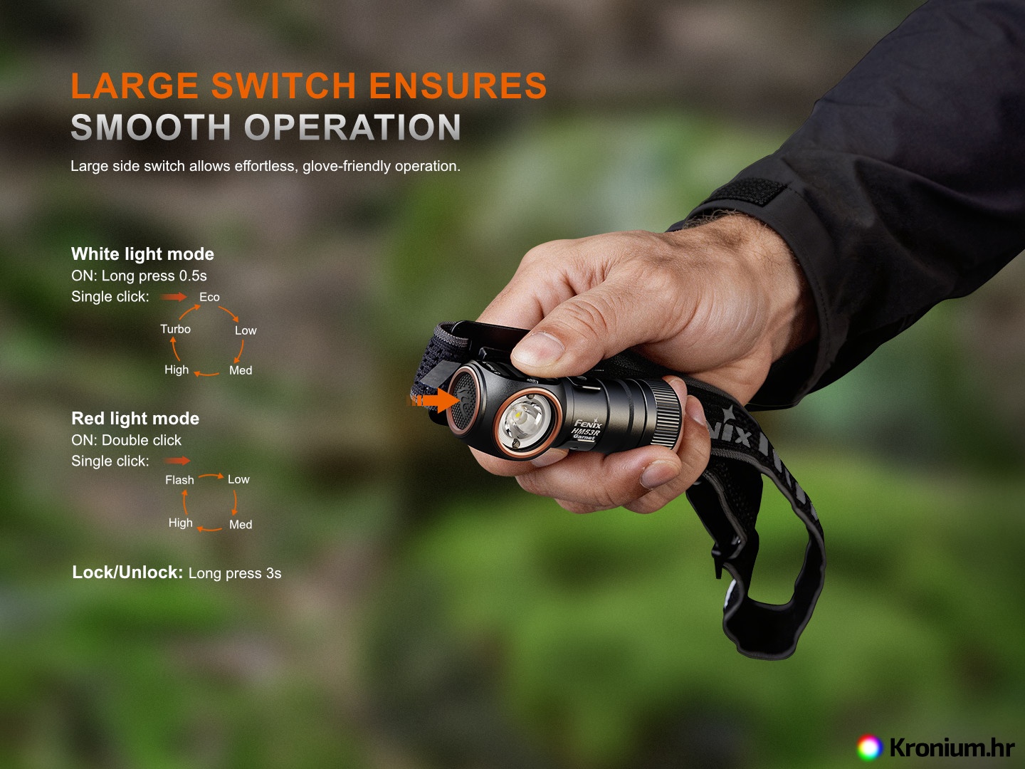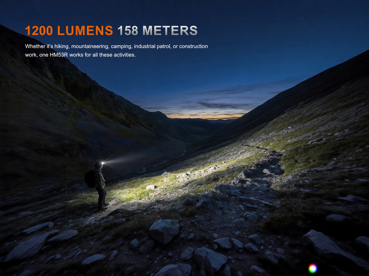 Izuzetno izdržljiva, lagana i prilagođena zahtjevnim korisnicima. Punjiva naglavna svjetiljka Fenix HM53R Garnet je posebno izdanje dizajnirano s naglaskom na vrhunske performanse i maksimalnu praktičnost na terenu. Nudi zasljepljujući svjetlosni tok do 1200 lumena (ANSI) s dometom do 158 metara. Njezina glavna prednost je neutralna nijansa bijele svjetlosti (4500 K), koja pruža vjerniji prikaz boja i znatno bolji kontrast u prirodi.