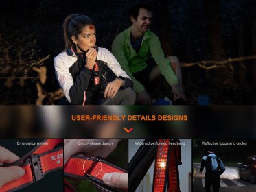 Kao i ostala Fenixova svjetla za stazu, HM65R-T V2.0 ima široki remen sa Sport Fit Sustavom withs jednim kotačićem za jednostavno podešavanje duljine remena. Na glavi možete brzo i jednostavno zategnuti traku jednom rukom. Remen je također perforiran i opremljen reflektirajućim elementima kako bi se osigurala dobra pasivna vidljivost. U usporedbi s prvom generacijom HM65R-T, novi model ima izreze za jednostavno uklanjanje remena, tako da se svjetiljka može lako koristiti na sportskim, radnim i taktičkim kacigama pomoću Fenix ALG-03 i ALG-04 nosača. Manja težina i dizajn ove čeone svjetiljke čine je posebno zanimljivim za trčanje, biciklizam i skijanje. Pogodna je i za druge sportske aktivnosti (planinarenje, penjanje, kampiranje, ribolov...). Garantirano da će vam dobro služiti u svakoj situaciji!