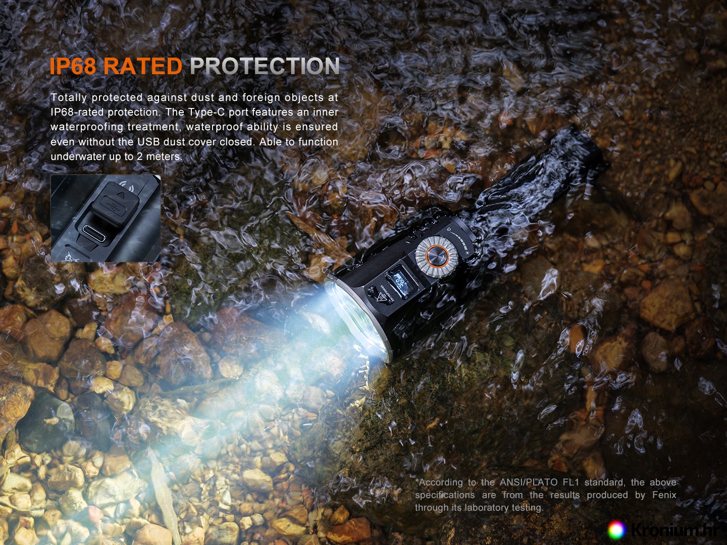 - Svjetiljku napajaju dvije Li-Ion 21700 baterije kapaciteta 5000 mAh (Fenix ARB-L21- 5000 V2.0), koji su uključeni.