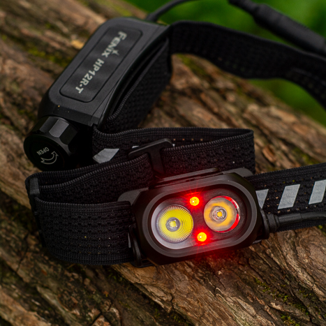 Novost je trkačka čeona svjetiljka Fenix HP12R-T, a od ostalih modela na bateriju 18650 razlikuje je odvojeno kućište za bateriju smješteno na potiljku. Ukupno čeona svjetiljka teži gotovo 200 grama, ali zahvaljujući savršenom rasporedu težine, to je odlična mogućnost da si priuštite veću bateriju i nemate problema da bi veća težina na čelu smetala. Još jedna prednost je crvena bljeskalica / svjetlo na baterijskom paketu. Savršeno povećava sigurnost pri trčanju na prometnicama i ne trebate dodatnu bljeskalicu, odnosno u kombinaciji s još jednom bljeskalicom bit ćete još bolje vidljivi drugim sudionicima u prometu (posebno vozačima automobila koji vam se približavaju s leđa). Visoka snaga do 1300 lumena s dometom do 200 metara pak jamči da ćete u svakoj situaciji i vi vidjeti. Osim dodatnog crvenog svjetla sprijeda i straga, čeona svjetiljka je opremljena s dva reflektora s dnevnom bijelom i s neutralnom nijansom svjetla. Oba reflektora možete kombinirati i upaliti istovremeno u načinima od 1300 i 70 lumena (turbo i niski način rada). Samostalno svijetli hladniji reflektor do 1000 lumena, a toplije svjetlo postiže maksimalnu snagu od 500 lumena, iako ima nešto uži svjetlosni snop i pri istoj snazi također duži domet od hladnijeg svjetla. Što je kod Fenixa prilično neobična konfiguracija, ali za trčanje i druge sportske aktivnosti ovo rješenje je sasvim zadovoljavajuće i dodaje mogućnost daljnjeg izbora što kome odgovara. Udobnost nošenja povećava udoban perforirani remen sa zatezanjem i otpuštanjem kotačićem, kako uostalom sugerira i '-T' (trail) u nazivu. IP66 je kod HP serije podrazumijevan, kao i visoka otpornost kao kod svih Fenix proizvoda.
