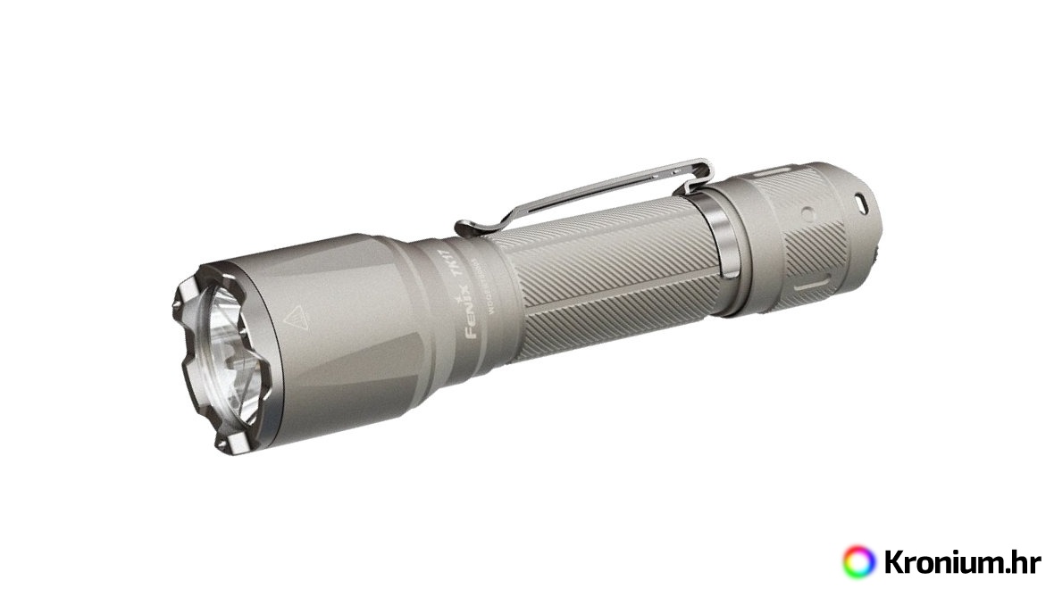 Snažna taktička svjetiljka Fenix TK17 nudi vrhunski svjetlosni tok do 3600 lumena (ANSI) i domet do 330 metara. Svjetiljku napaja jedna Li-ion baterija tipa 21700 6000 mAh s USB-C priključkom i funkcijom powerbanka, tako da u nuždi možete napuniti i telefon ili drugu elektroniku. Baterija osigurava energiju za do 60 sati rada. Vrlo čvrst i vodootporan dizajn predodređuje ovu taktičku svjetiljku za teške vanjske uvjete, za profesionalce, oružane snage i lovce. LED svjetiljka Fenix TK17 koristi dvostruki taktički prekidač koji omogućuje brže i pouzdanije upravljanje u kriznim situacijama. Može se, na primjer, brzo uključiti izravno u stroboskopski način rada ili na najveću snagu. Glava svjetiljke opremljena je udarnim okvirom od nehrđajućeg čelika, koji je dodatno opremljen s tri volframova šiljka. Stoga se svjetiljka može učinkovito koristiti za probijanje stakla u kriznim situacijama ili za samoobranu.