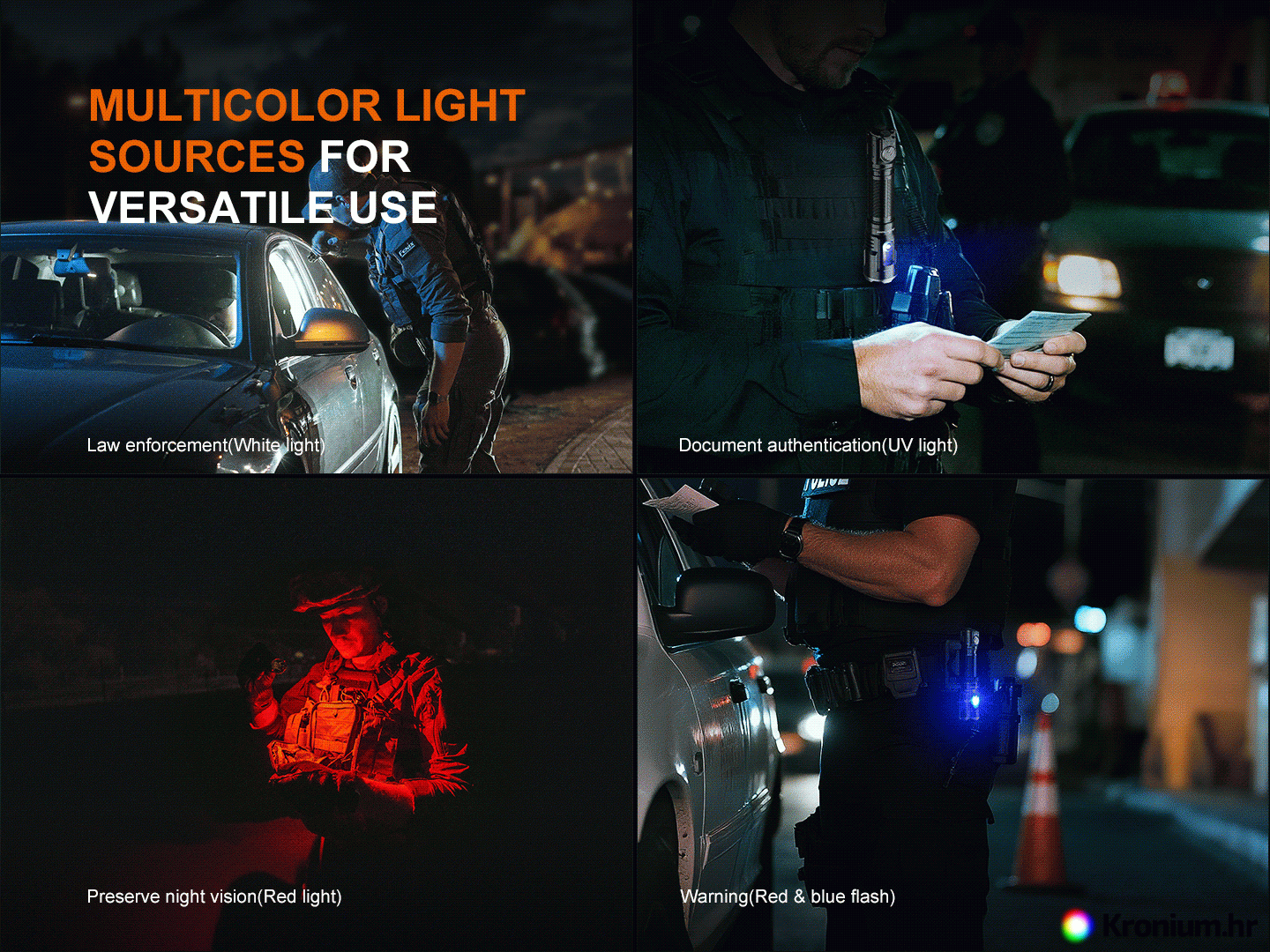 Zahvaljujući svojim parametrima, visokoj izdržljivosti i funkciji policijskog treperenja (crveno/plavo), ova svjetiljka je savršen izbor za policajce, spasioce, vatrogasce i zaštitarske agencije. Svoju primjenu će pronaći i kod servisera, tehničara (zahvaljujući bočnom radnom svjetlu) ili za zahtjevne outdoor entuzijaste koji traže beskompromisnu kvalitetu.