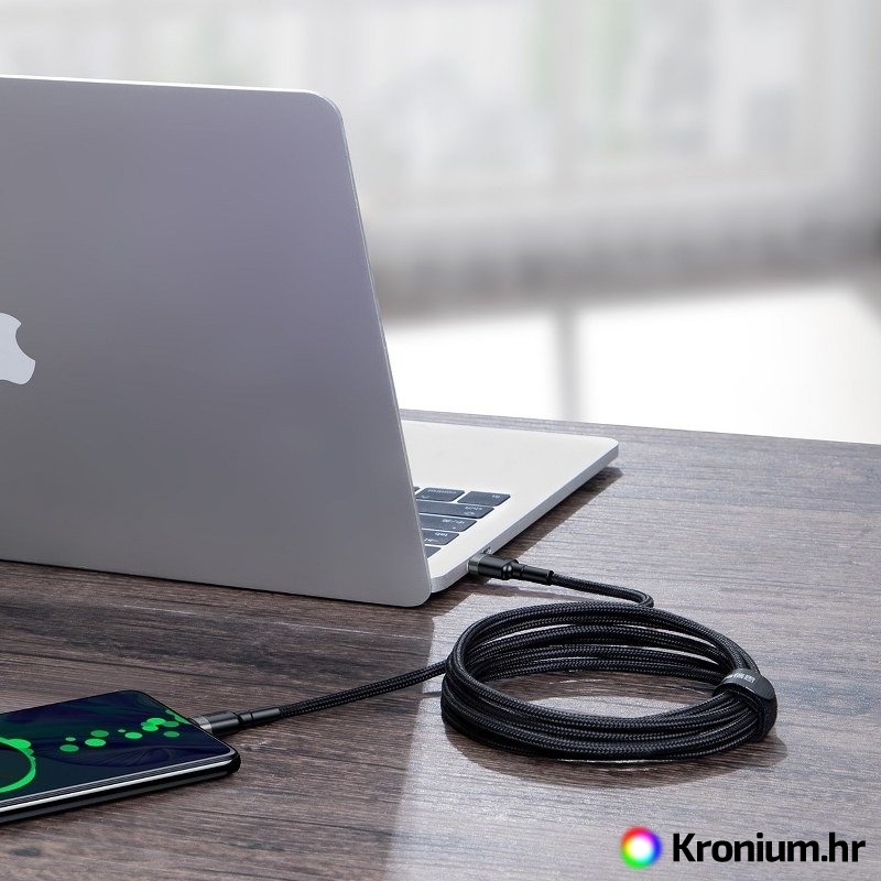 Predstavljamo kabel koji podržava brzo punjenje i prijenos podataka Baseus CATKLF-ALG1 duljine 2 m. Zahvaljujući univerzalnom USB-C izlazu, možete jednostavno napuniti svoj telefon, prijenosno računalo, svjetiljku ili čeonu lampu. Maksimalna snaga od 100 W omogućuje vam trenutno punjenje uređaja ili prijenos podataka jednako brzo. Za brzo punjenje vaših uređaja brinu se podržani standardi - Quick Charge i Power Delivery sa snagom do 100 W, sigurnost punjenja osiguravaju napredni čipovi Brzina prijenosa podataka do 480 Mb/s osigurava da datoteke između odabranih izvora prenose se u tren oka.