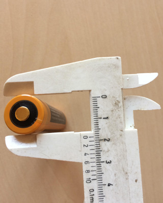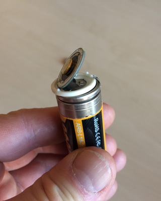 A Fenix 18650 típusú Li-ion akkumulátor 18 mm széles és körülbelül 69 mm hosszú.