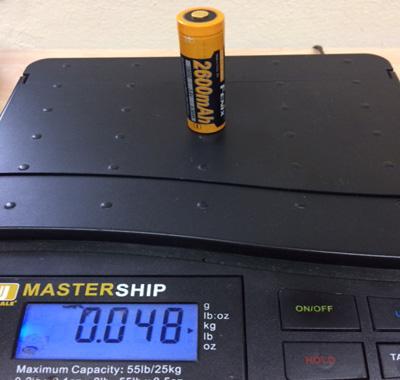 A szabványos, 2600 mAh kapacitású Fenix 18650 típusú Li-ion akkumulátor 48 grammot nyom, a 9900 mAh kapacitású vizsgált cella mindössze 24 grammot. A jelek szerint olyan technológiai áttörésre bukkantunk, amivel még senki sem dicsekedett :-)