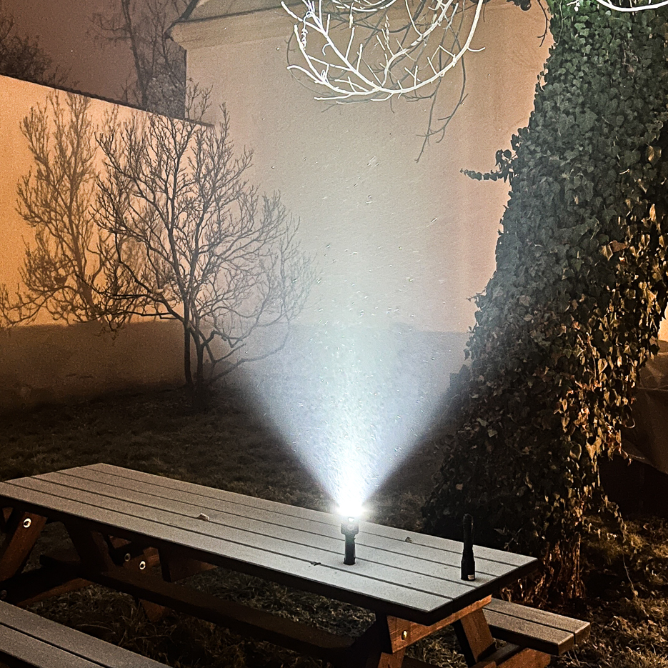 - Powerbank: USB-C priključak je dvosmjeran. U nuždi možete napuniti telefon iz baterije svjetiljke (ogromnih 12 000 mAh ukupno!).