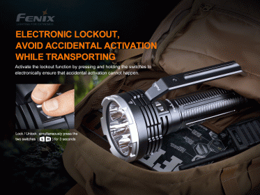 Gumbe za upravljanje možete zaključati kako ne bi došlo do neželjenog uključenja, na primjer u prtljagi tijekom prijevoza – u stanju isključenja pritisnite oba gumba i držite ih barem tri sekunde. Nakon toga će svjetiljka zatreperiti što signalizira zaključavanje. Za otključavanje je potrebno opet oba gumba pridržavati tri sekunde. Neželjeno uključenje možete spriječiti i popuštenjem tijela svjetiljke, čime se prekine električni kontakt između glave svjetiljke i baterije.