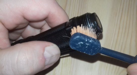- Rastavite svjetiljku, uzmite čisti alkohol ili npr. Deoxit i očistite kontakte, navoje i rubove svjetiljke. Pazite samo da prilikom čišćenja ne dodirnete o-prsten, jer ga sredstva za čišćenje mogu isušiti i tako ga učiniti beskorisnim.