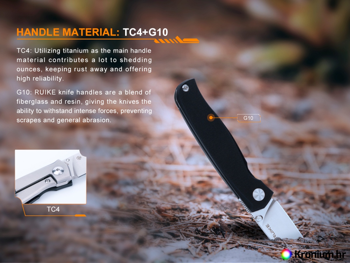 - Materijal drške: Legura titana TC4 + kompozit G10