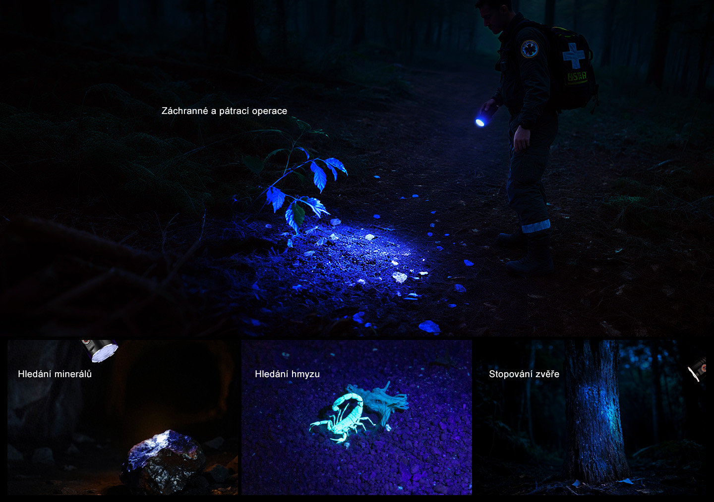 Ultraljubičasto svjetlo, konkretno valna duljina od 365 nm koju koriste Fenix svjetiljke, može učiniti vidljivim fluorescentne materijale. U praksi to znači čitav niz primjena: