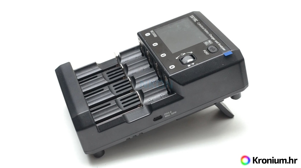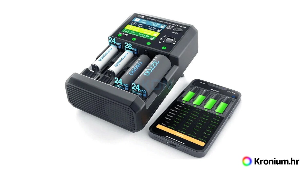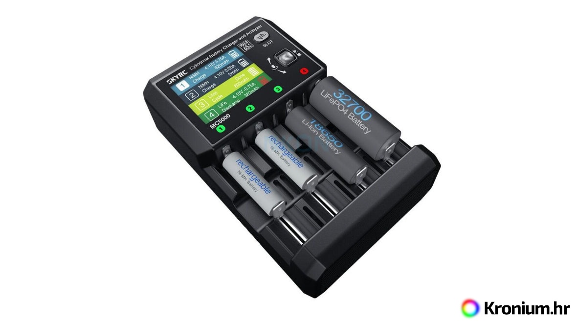 SkyRC MC5000 je ultimativna univerzalna stanica za punjenje i analizator, prozvan "švicarskim nožem" za cilindrične baterije. Dizajniran je da zadovolji zahtjeve i najzahtjevnijih korisnika. Podržava više od 10 vrsta kemija baterija, uključujući Li-ion, Li-ion HV, LiFe, NiMH, NiCd, eneloop, NiZn, RAM, LTO, a spreman je i za budućnost s podrškom za Na-ion (natrij-ionske) baterije. Zahvaljujući masivnoj struji punjenja do 5,00 A po utoru (ukupna snaga 80 W) i struji pražnjenja do 2,00 A (ukupna snaga 20 W), vaše će baterije biti napunjene brže nego ikad prije. Ključna inovacija je integrirani USB-C izlaz s podrškom za Power Delivery (PD 3.0) snage do 65 W, koji pouzdano puni vaše prijenosno računalo, tablet ili pametni telefon.