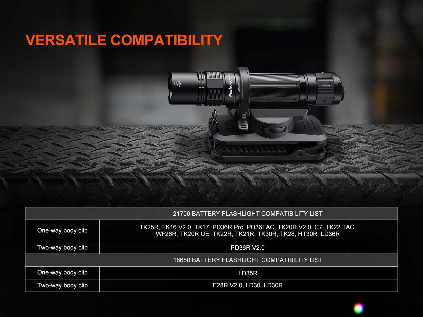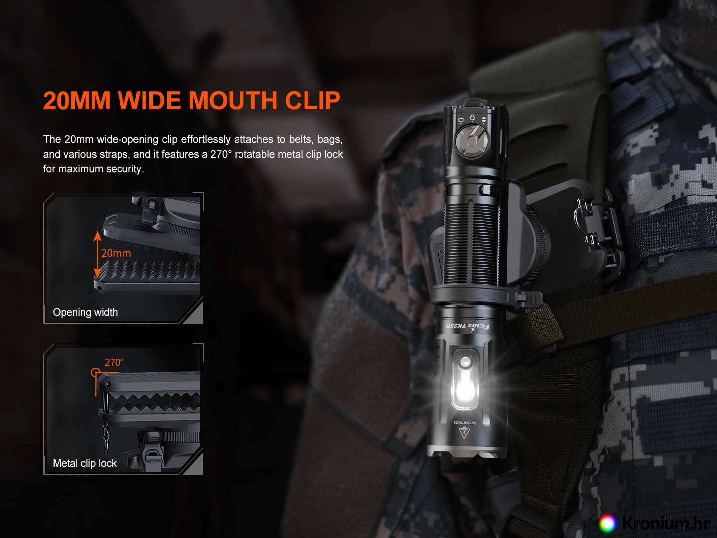 Rotirajući nosač Fenix ALC-03 služi za pričvršćivanje svjetiljki pomoću kopče na remen, naramenicu ruksaka i slično. U nosaču je svjetiljka dodatno osigurana gumenom obujmicom. Može se koristiti za pričvršćivanje džepnih svjetiljki opremljenih kopčom kao što su Fenix PD36R PRO, PD36R ACE, PD35R ACE, TK16, TK17, TK21R i druge. Nosač se na remen pričvršćuje pomoću masivne kopče i može se dodatno osigurati žičanom oprugom. Zahvaljujući rotirajućem dizajnu, svjetiljku je moguće okretati za 360°.
