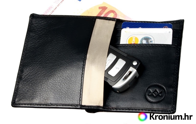 Kvalitetna kožna torbica sa zaštitom od materijala Cryptalloy postavljena u stijenke za daljinsko upravljanje automobilom sa sustavom elektroničkog zaključavanja i pokretanja koji omogućuje otvaranje i pokretanje automobila bez ključa (KESSY - Keyless Entry, Start and exit System). Zidovi cijelog kućišta opremljeni su dvostrukim štitom od materijala Cryptalloy koji štiti sve korištene frekvencijske pojaseve za čitanje podataka. Kućište odgovara elektroničkim ključevima većine proizvođača automobila (vidi dimenzije kućišta u nastavku). Stavljanjem ključeva u zatvorenu kutiju onemogućuje se daljinsko očitavanje ključeva od strane neovlaštene osobe, a sprječava se i krađa automobila na RSA (Relay-Station-Attacks) način koji se sve češće pojavljuje. Ovo je važan sigurnosni alat za sve vlasnike automobila s pristupom bez ključa. Osim toga, torbica sadrži i tri džepa za platne kartice i pretinac za novčanice.