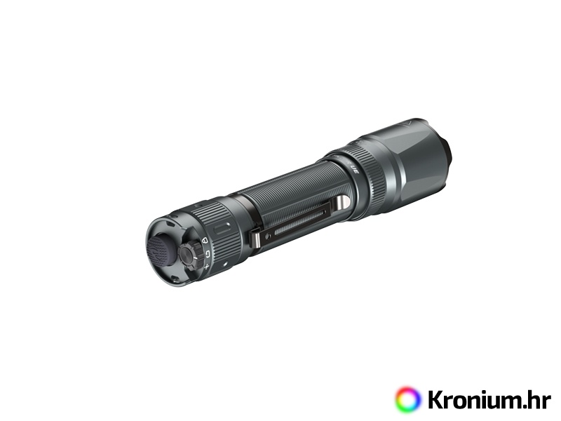 Taktička svjetiljka na punjenje Fenix TK20R UE nudi svjetlosni tok do 2.800 lumena (ANSI). Opremljena je vrhunskom LED Luminus SFT-70, koja u kombinaciji s glatkim reflektorom stvara dobro zaoštren svjetlosni konus s izvanrednim dosegom od 465 metra. Dio pakiranja je Li-ion baterija na punjenje 21700 kapaciteta 5000 mAh, koja se puni preko USB-C konektora izravno u svjetiljki. Rupica za punjenje je zaštićena vijčanom maticom, te je izvrsno otporna na vodu i onečišćenje. Na završetku svjetiljke je taktički prekidač i poluga za preklapanje FlexiSensa control, kojom je moguće svjetiljku zaključati ili odabrati jedan od dva moda korištenja. U taktičkom modu je moguće svjetiljku uključiti u režim 2.800 lumena ili u stroboskop s mjenjajućom frekvencijom. U službenom modu moguće je birati između četiri režima svjetljenja te izdržljivosti do 40 sati. Ova taktička svjetiljka je zahvaljujući svojoj masivnoj izvedbi čvrsta poput tenka, ali je i sačuvala kompaktnu veličinu. Robusna izvedba omogućava korištenje svjetiljki na dugim cijevima, te je pogodna za profesionalce, oružane snage i lov.