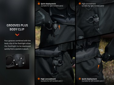 Kompatibilan s taktičkim svjetiljkama Fenix PD36R PRO, PD36 TAC, TK16 V2.0, TK17, TK20R V2.0, TK20R UE, TK21R, TK22 TAC, TK30, HT18, HT30R.