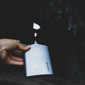 Ultralagana titanska čutura za "nešto za zagrijat se" odlična je za izlete i boravak u prirodi. Bočica dolazi u lijepom omotu od umjetne kože s zanimljivom površinom. Jednostavan, klasičan i bezvremenski oblik neće smetati džepu hlača ili jakne. Boca također savršeno pristaje ispod poklopca ruksaka ili izravno u ruksak. Lako ga je imati pri ruci tijekom planinarenja ili kampiranja. Za jednostavnu upotrebu, titanska čutura koristi praktičan mehanizam poklopca koji se preklopi tako da ga nikada nećete izgubiti. Čep je opremljen nepropusnom brtvom od silikona za hranu. Zahvaljujući ovom dizajnu, ne riskirate da vasa omiljena žestica završi u džepu ili ruksaku. Uključuje praktičan lijevak od titana za jednostavno punjenje čuture. Titan je savršen materijal za izradu boca jer je biokompatibilan, netoksičan i hipoalergen. Materijal ni na koji način neće utjecati na okus alkohola u boci, niti će poprimiti bilo kakve mirise ili kemikalije. Alkohol možete bezbrižno čuvati u čuturi dugo vremena. Bez obzira idete li u kolibu ili na Himalaju, ova nelomljiva boca dobro će vam poslužiti i uštedjeti prostor i težinu na svim vašim avanturama na otvorenom. Materijal koji se koristi nije korozivan i može se prati u perilici posuđa. Ne sadrži BPA.
