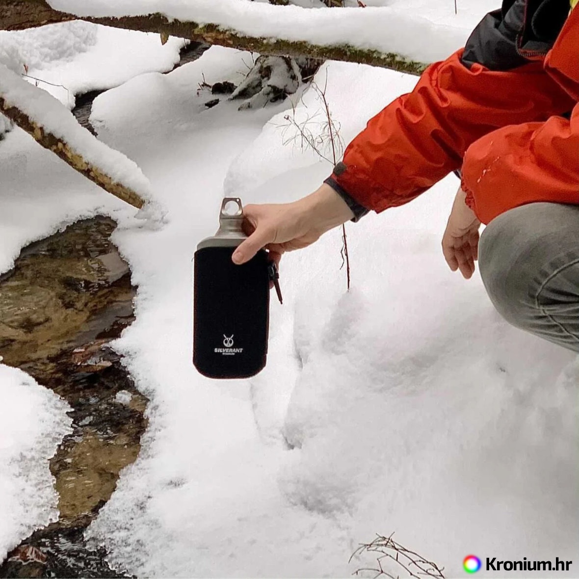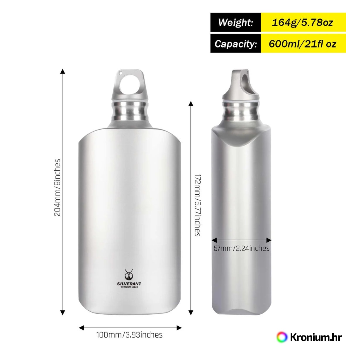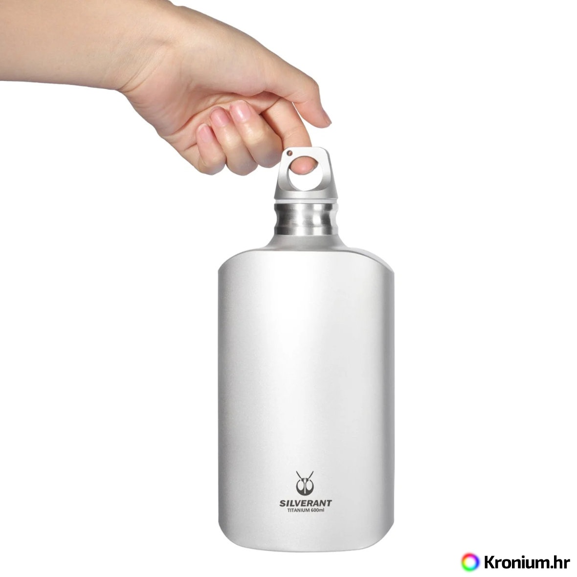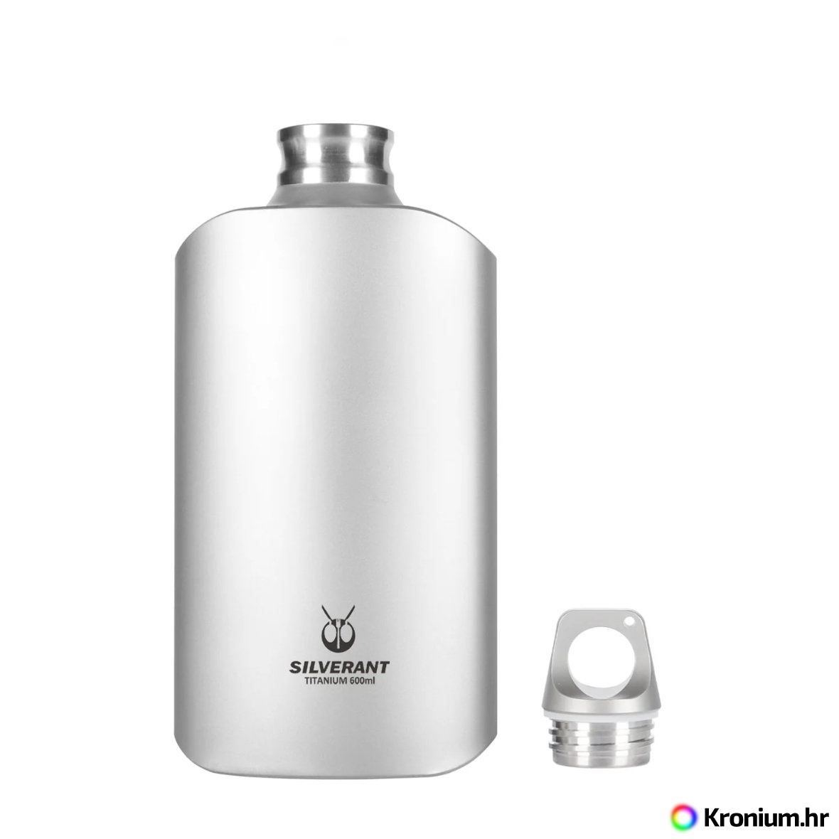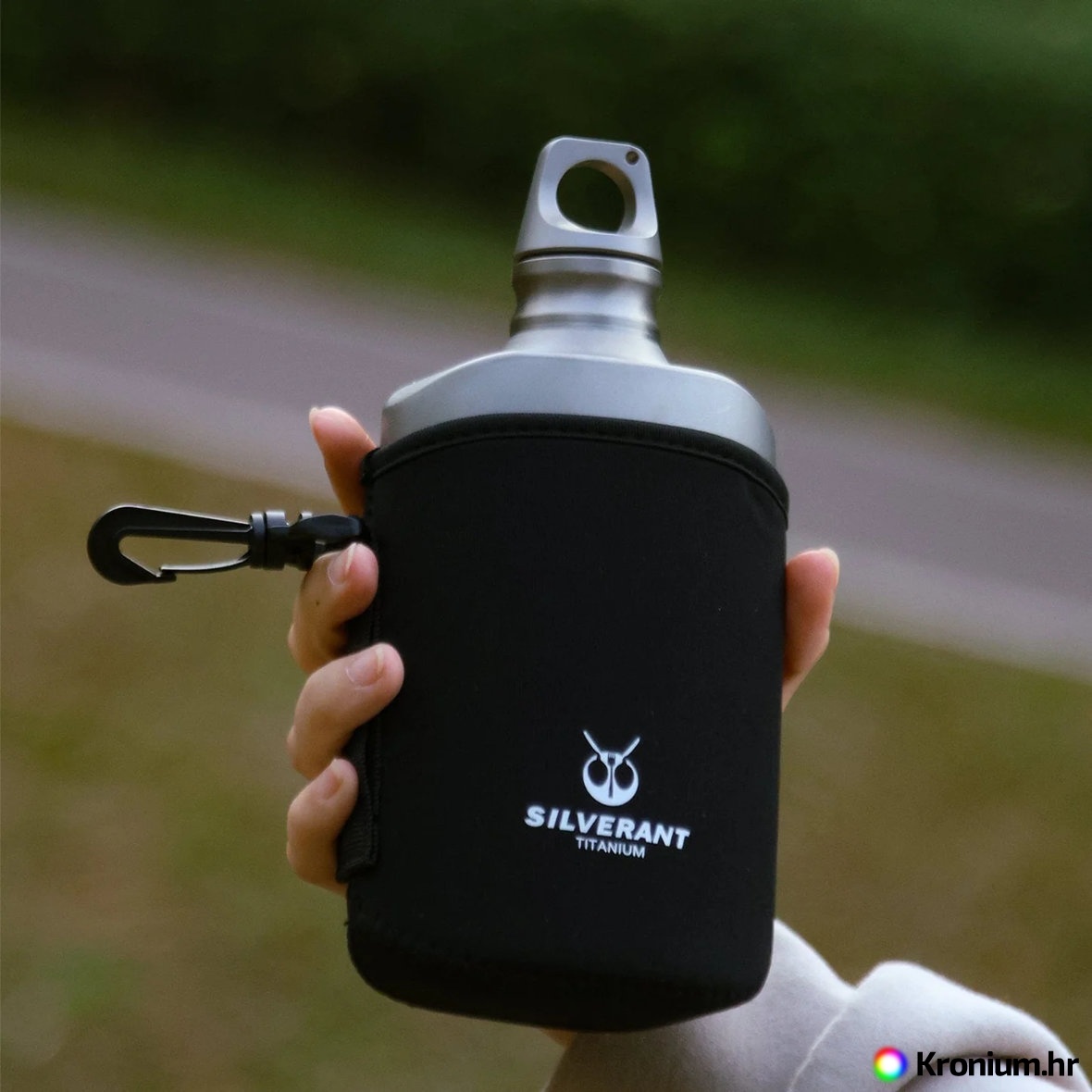 Iznimno lagana, izdržljiva boca od 600 ml SilverAnt od legure titana napravljena je za doživotnu avanturu. Nosite svoje omiljeno piće svugdje sa sobom, u ured, dok se bavite sportom, planinarite i putujete. Praktični ravni tanki oblik ne smeta u ruksaku i bolje pristaje u bočne džepove. Boca ima čep s petljom, tako da se može pričvrstiti na karabiner. Dolazi s termo navlakom, možete duže uživati u vrućoj kavi i čaju, a ljeti navlaka održava vaša ohlađena pića na optimalnoj temperaturi. Materijal ne ostavlja nikakav naknadni okus ili miris tekućinama koje se nose unutra. Ne sadrži BPA i otporan je na koroziju.