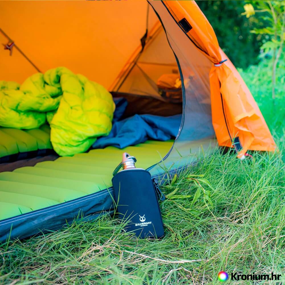 Iznimno lagana, izdržljiva boca od 800 ml SilverAnt od legure titana napravljena je za doživotnu avanturu. Nosite svoje omiljeno piće svugdje sa sobom, u ured, dok se bavite sportom, planinarite i putujete. Praktični ravni tanki oblik ne smeta u ruksaku i bolje pristaje u bočne džepove. Boca ima čep s petljom, tako da se može pričvrstiti na karabiner. Dolazi s termo navlakom, možete duže uživati u vrućoj kavi i čaju, a ljeti navlaka održava vaša ohlađena pića na optimalnoj temperaturi. Materijal ne ostavlja nikakav naknadni okus ili miris tekućinama koje se nose unutra. Ne sadrži BPA i otporan je na koroziju.