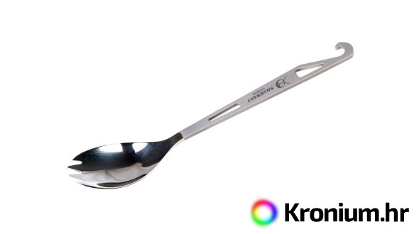 Silverant Bottle Opener Spork Sandblasted & Polished titanijevi pribor za jelo kombinira žlicu, vilicu i otvarač za boce u jednom alatu, koji je integriran na kraju ručke. Bez obzira idete li u kolibu ili na Himalaju, ovaj neuništivi alat će vam dobro poslužiti i uštedjeti prostor i težinu na svim vašim izletima na otvorenom. Spork je izrađen od lagane i izuzetno snažne legure titana s pijeskarenom ručkom. Materijal ne korodira, hipoalergen je i može se prati u perilici posuđa. Ne sadrži BPA.