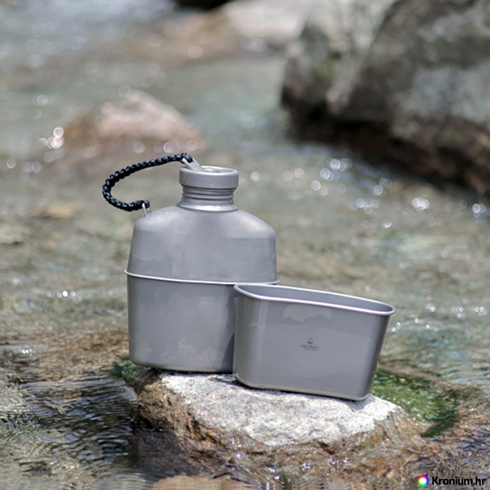 - Uključuje čašu od titana, poklopac, plastični čep i tekstilnu torbicu.